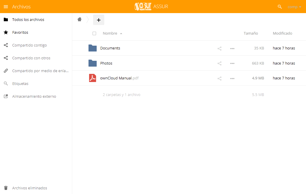 Cuando haya entrado en el interfaz web con sus credenciales encontrará un menú similar al del explorador de Windows o Finder de Mac OSx.