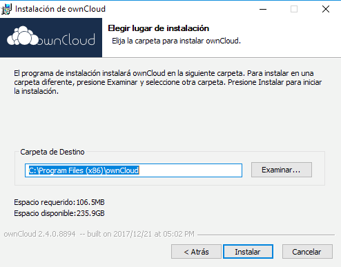 En la siguiente pantalla haremos lo mismo, dejaremos la ubicación por defecto y le daremos a instalar.